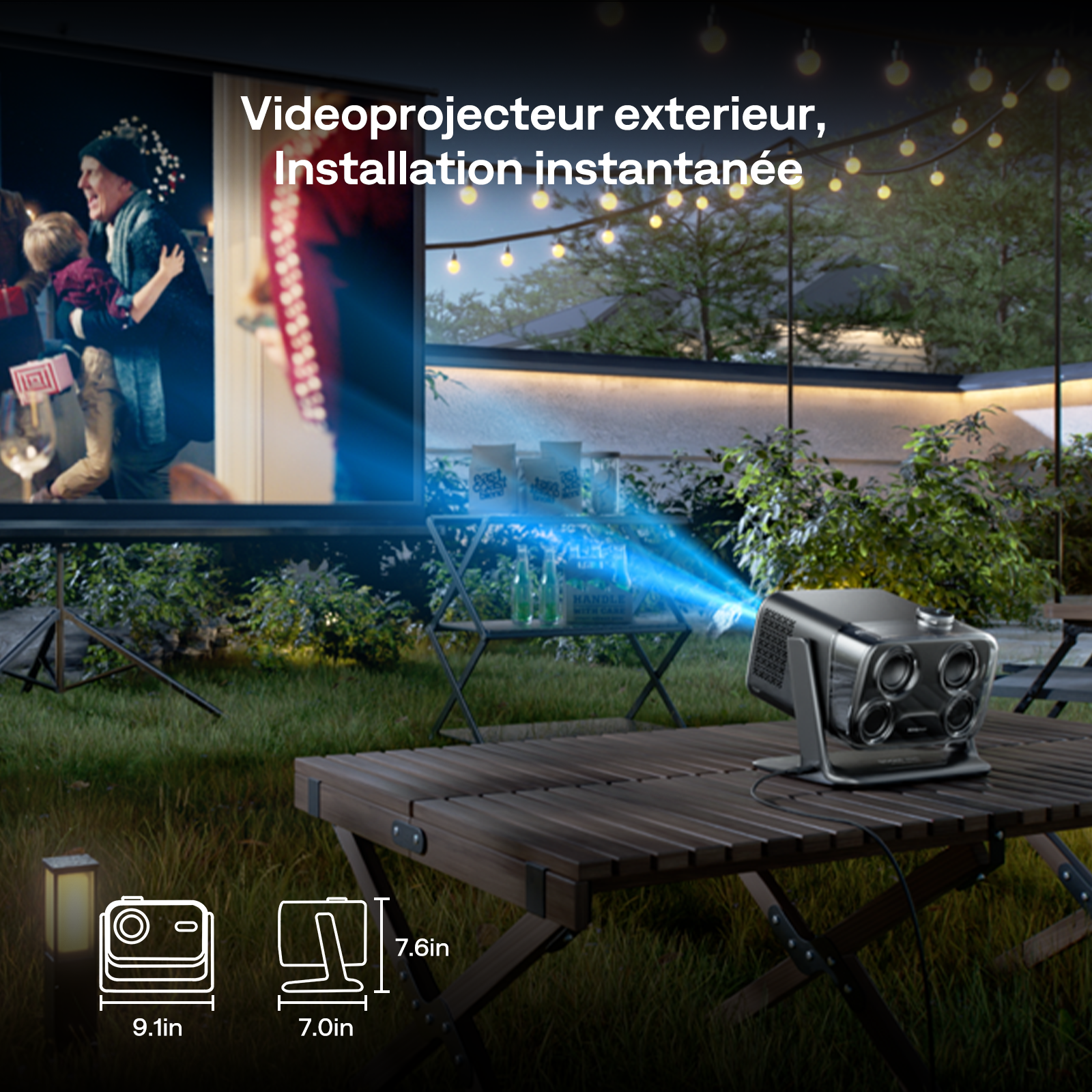 L’installation a été conçue pour être rapide et pratique. Le projecteur utilise une technologie ToF pour réaliser l’autofocus et la correction trapézoïdale en temps réel, avec un réajustement annoncé en 3 secondes. Il ajoute aussi l’évitement automatique des obstacles et l’alignement automatique de l’écran.