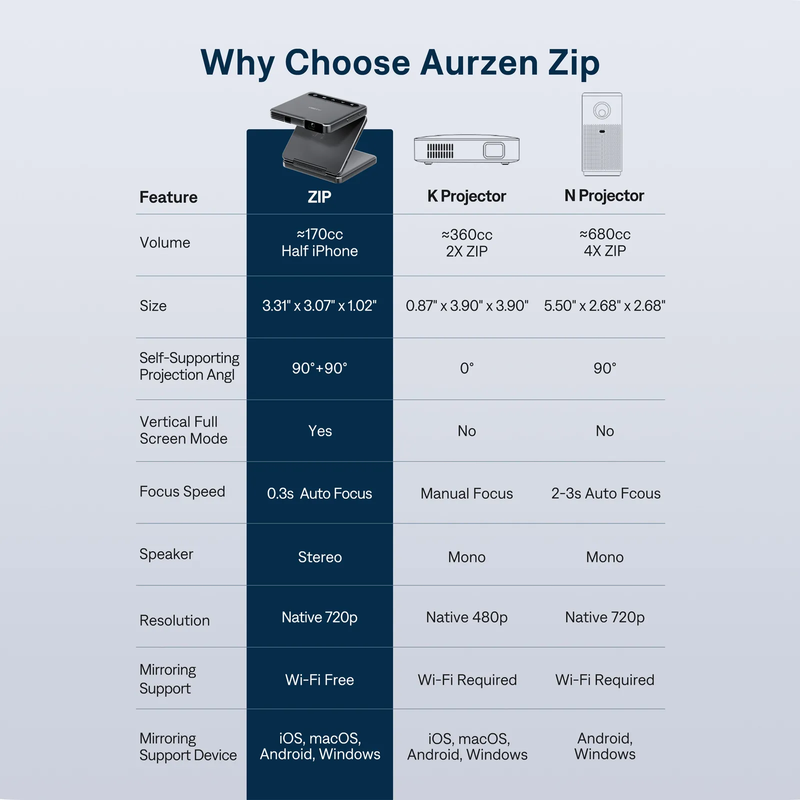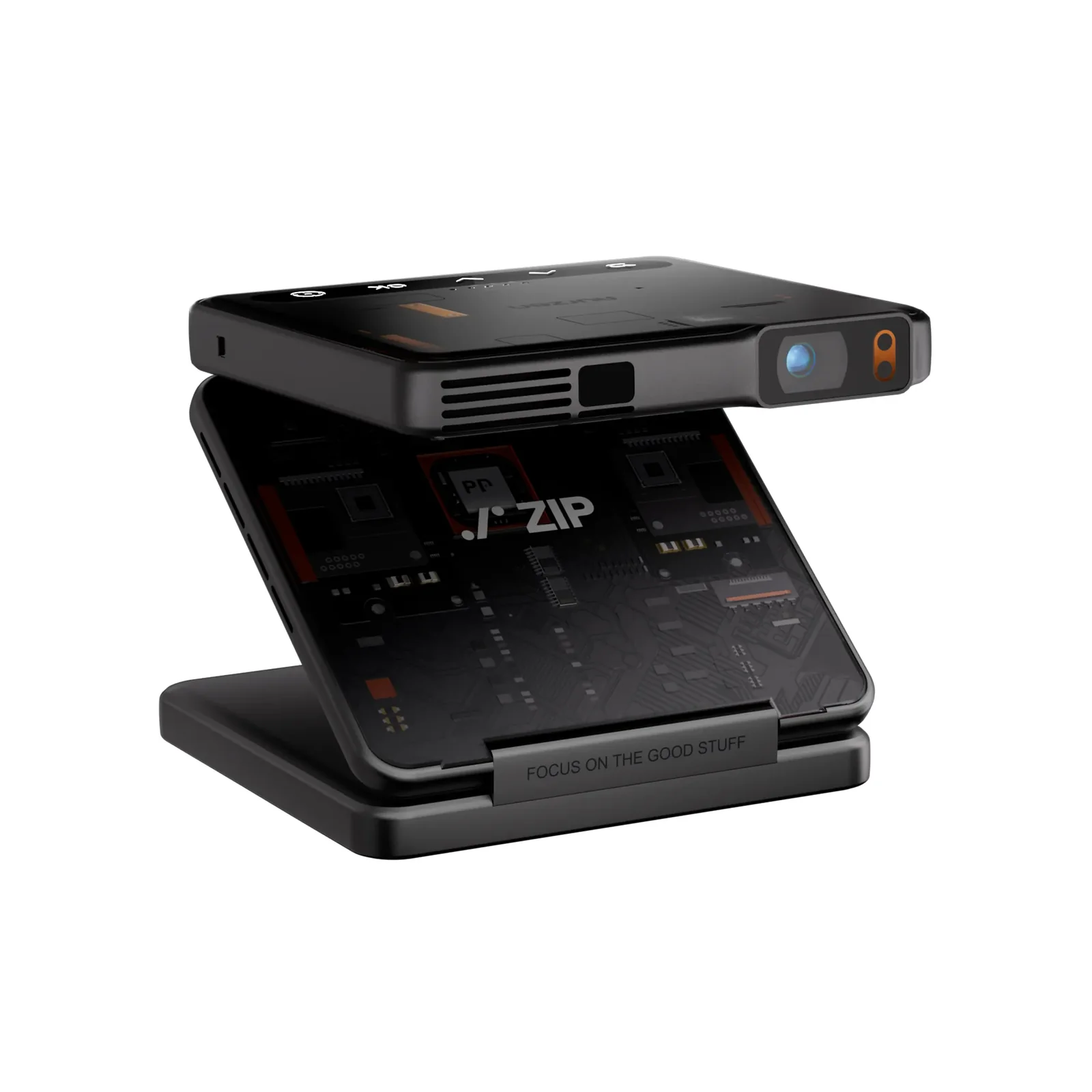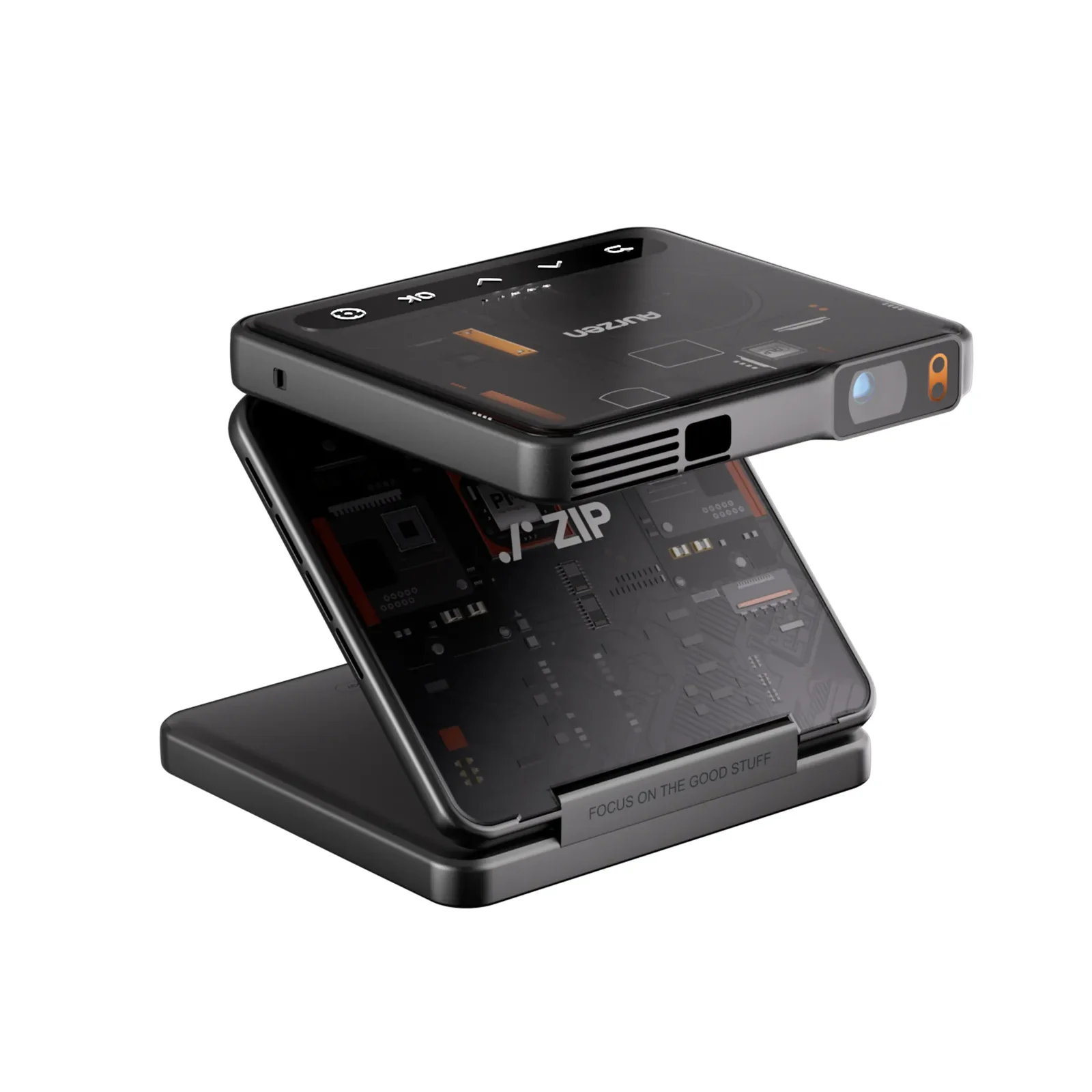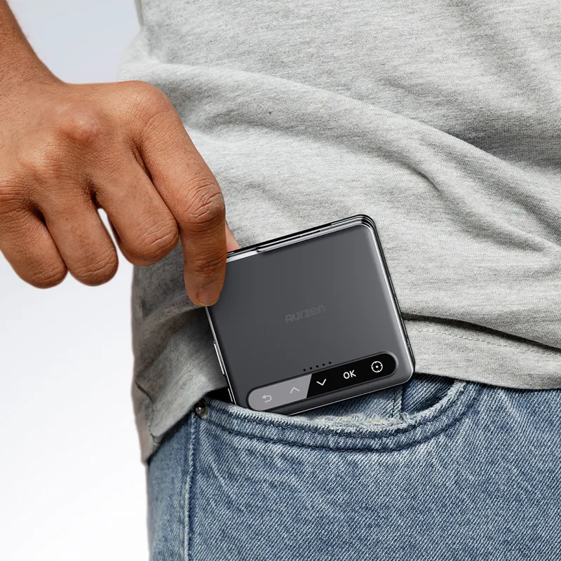 L’Aurzen ZIP Tri-Fold Portable Projector est un mini vidéoprojecteur ultra-portable conçu pour une utilisation mobile, rapide et simple. Son principal élément différenciant est son design tri-fold pliable en Z, pensé pour offrir un format de poche tout en intégrant projecteur, support orientable, batterie et haut-parleurs dans un seul appareil.
