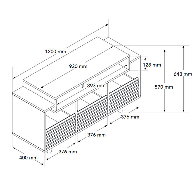 Dimensions externes (L x H x P) : 1200 x 643 x 400 mm