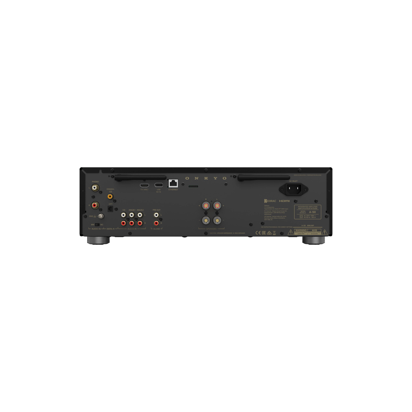 Le Onkyo A-50 Network Integrated Amplifier est un amplificateur intégré stéréo haut de gamme conçu pour centraliser amplification, streaming et sources analogiques/numériques dans un seul appareil. Issu de la série Onkyo Icon, il combine une amplification Class AB, une architecture High Current, un DAC Hi-Res 32 bits / 768 kHz, la correction acoustique Dirac Live et une connectivité réseau complète.
