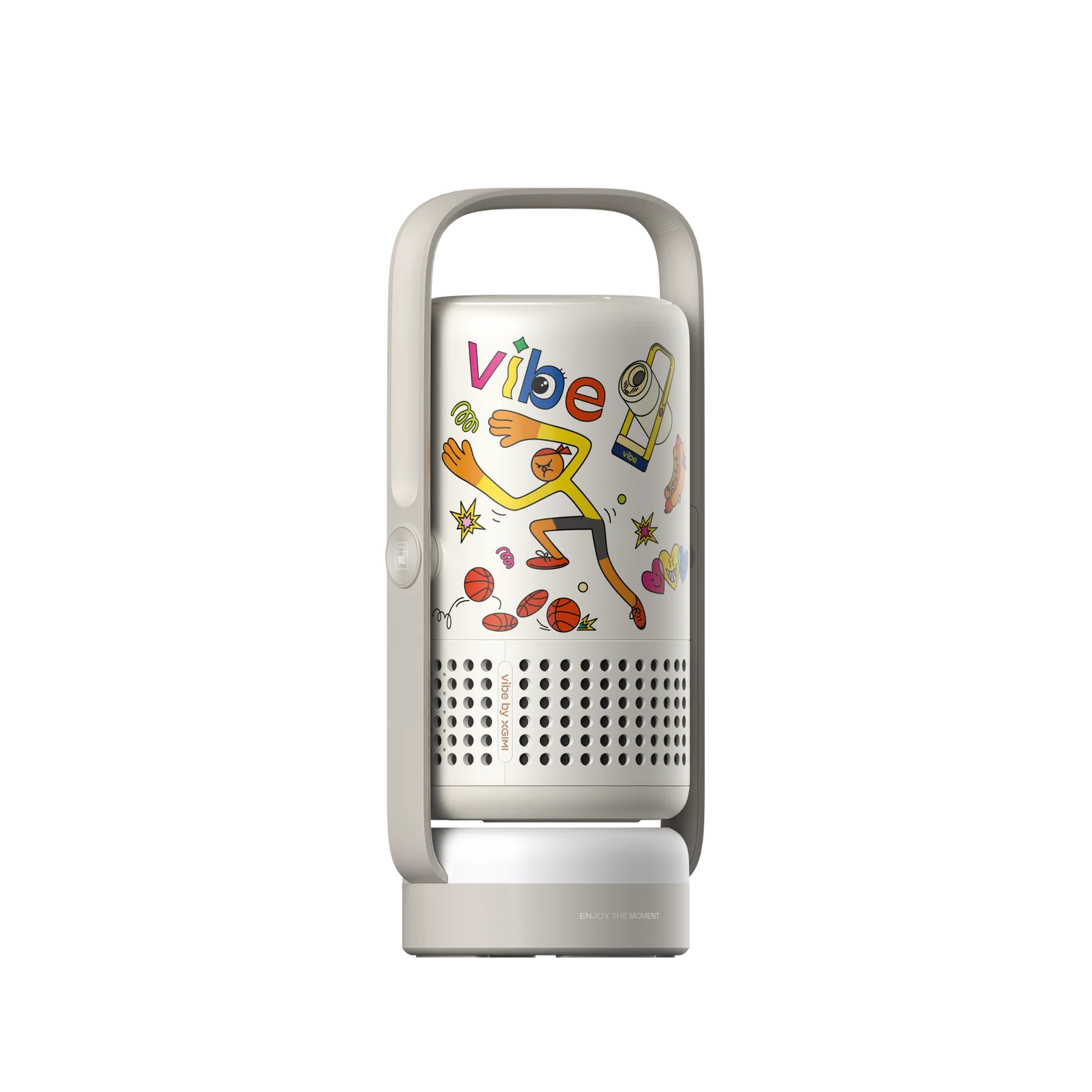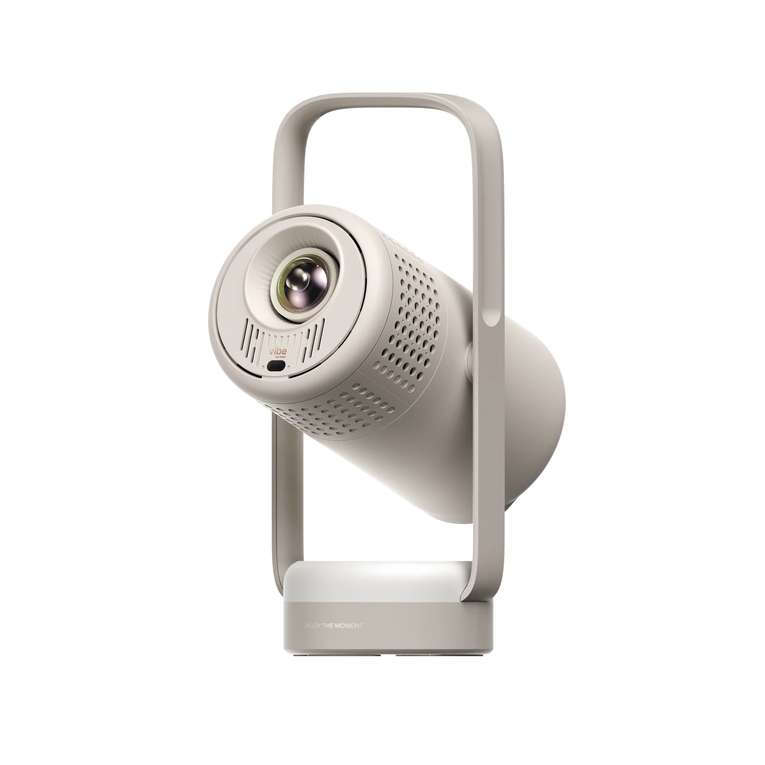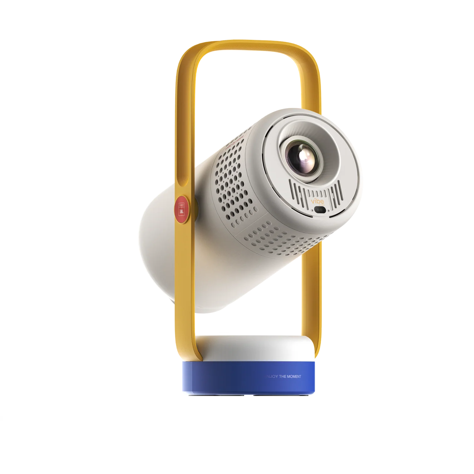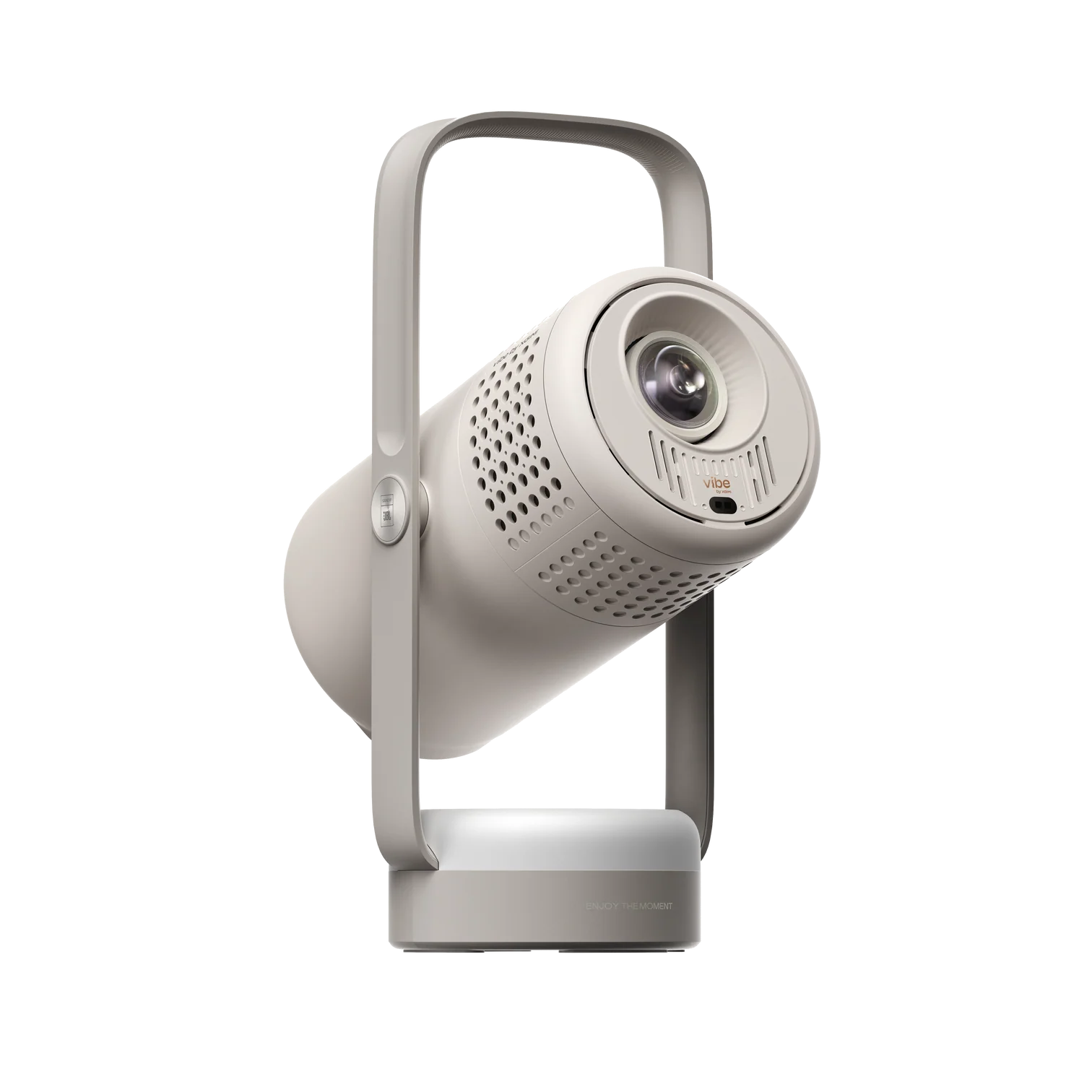 Le Vibe One mise sur la mobilité avec une batterie de 38,48 Wh, annoncée pour jusqu’à 1,2 heure de lecture vidéo en mode Éco et jusqu’à 4 heures de lecture musicale. Son pied intégré, réglable jusqu’à 160°, sert aussi de poignée, ce qui facilite les déplacements et le positionnement du projecteur.
